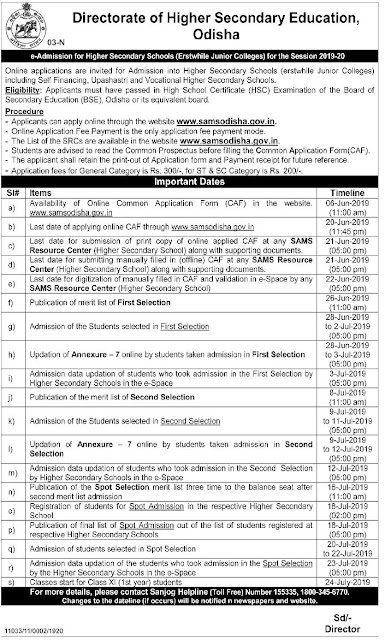 2. Last date for applying online CAF through http://samsodisha.gov.in/Juniorweb.aspx  -20 June 2019